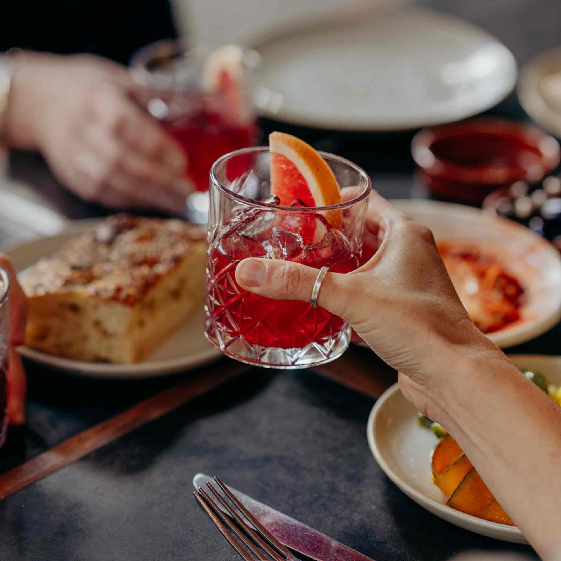 A PREMIUM NON-ALCOHOLIC DRINK CRAFTED TO SATISFY THE SENSES FROM A DECADENT, FRAGRANT AND FLAVOUR RICH COMBO OF 15 INGREDIENTS, MACERATED AND DISTILLED FOR 96+ HOURS. INSPIRED BY THE ITALIAN APÉRITIF - A LOW OR NO ALCOHOL PRE-DINNER DRINK BASED ON THE TRADITION OF PLEASURE.